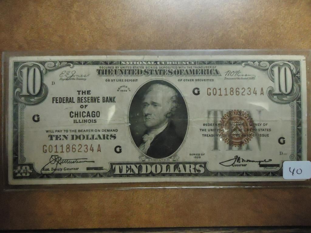 1929 $10 NATIONAL CURRENCY CHICAGO BROWN SEAL