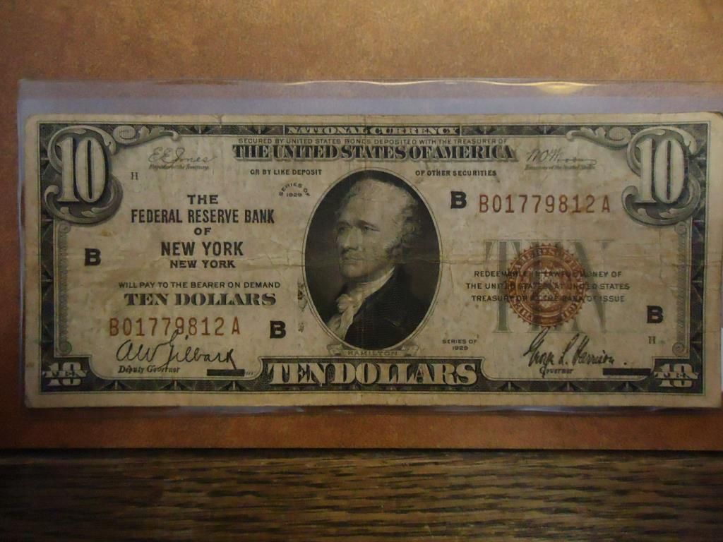 1929 $10 NATIONAL CURRENCY NEW YORK BROWN SEAL