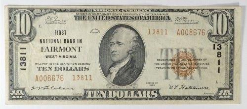 1929 $10 NATIONAL FAIRMONT, WV #13811 VF