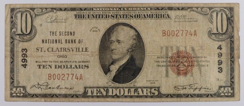 1929 $10 NATIONAL ST. CLAIRSVILLE, OH #4993