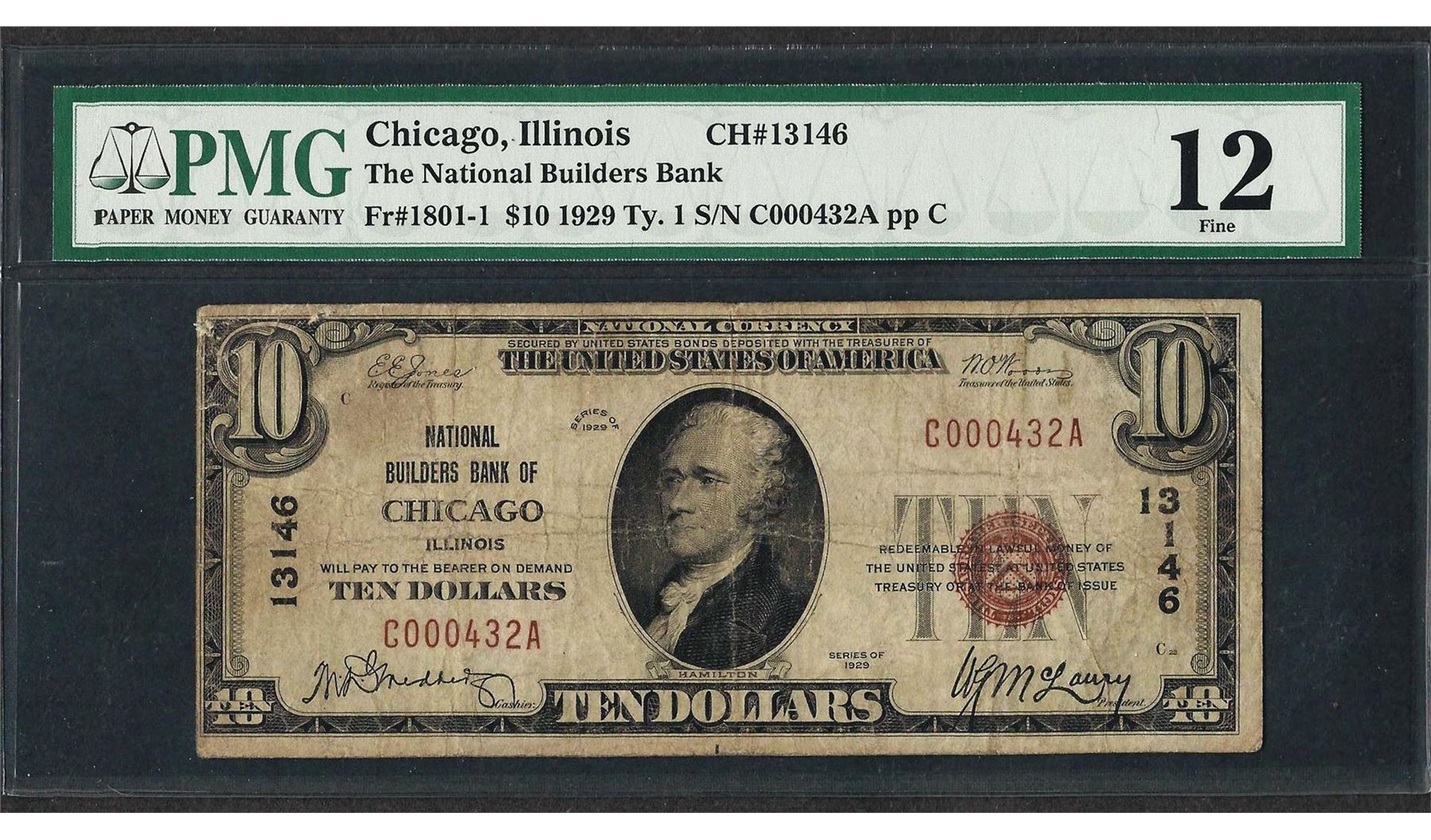 1929 $10 National Currency Note Chicago, Illinois CH# 13146 PMG Fine 12