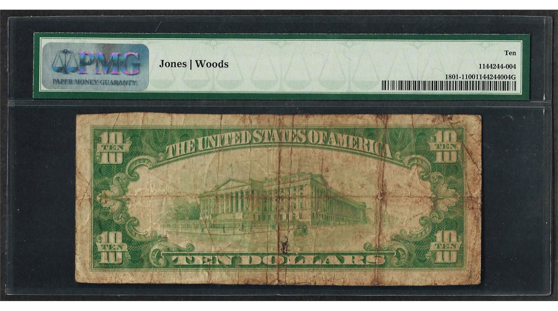 One 1929 $10 National Currency Note Phillipsburgh, KS CH# 3601 PMG Very Good 10. PMG Certified.