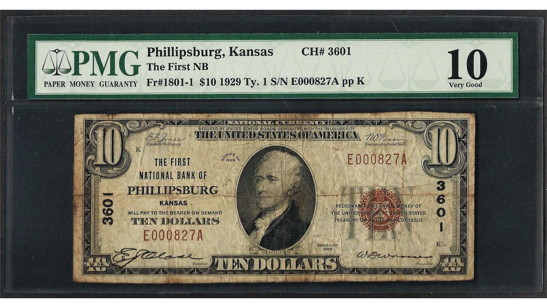 1929 $10 National Currency Note Phillipsburgh, KS CH# 3601 PMG Very Good 10