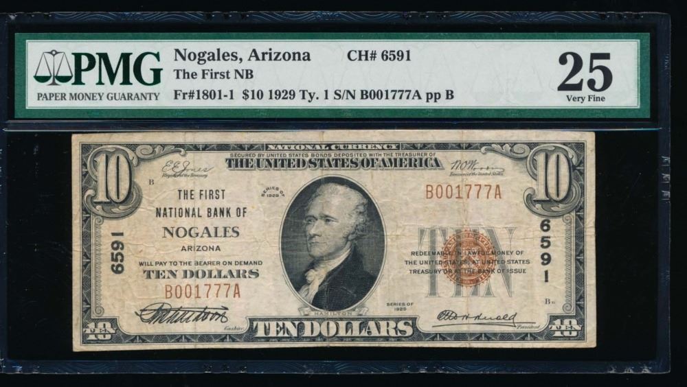 One 1929 $10 Nogales National Bank Note PMG 25.