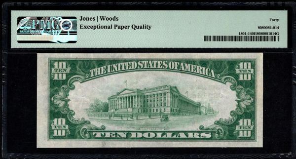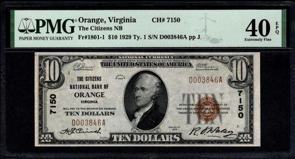 One 1929 $10 Orange VA National PMG 40EPQ.