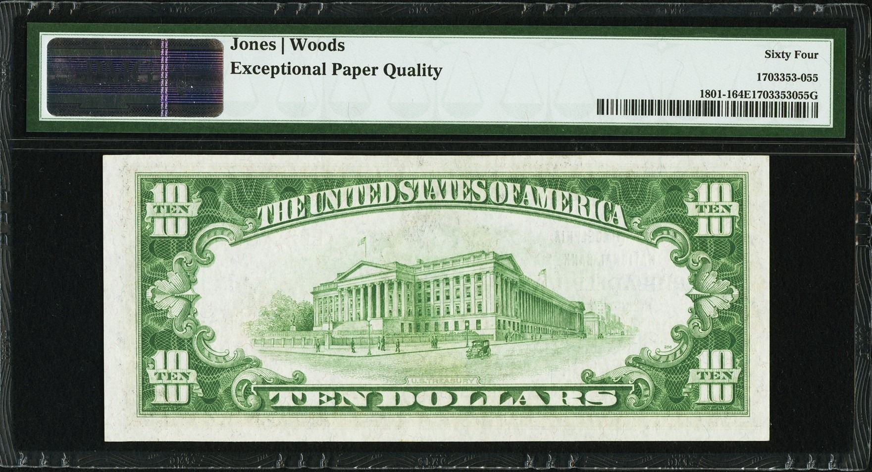 One 1929 $10 Philadelphia National Bank Note PMG 64EPQ.
