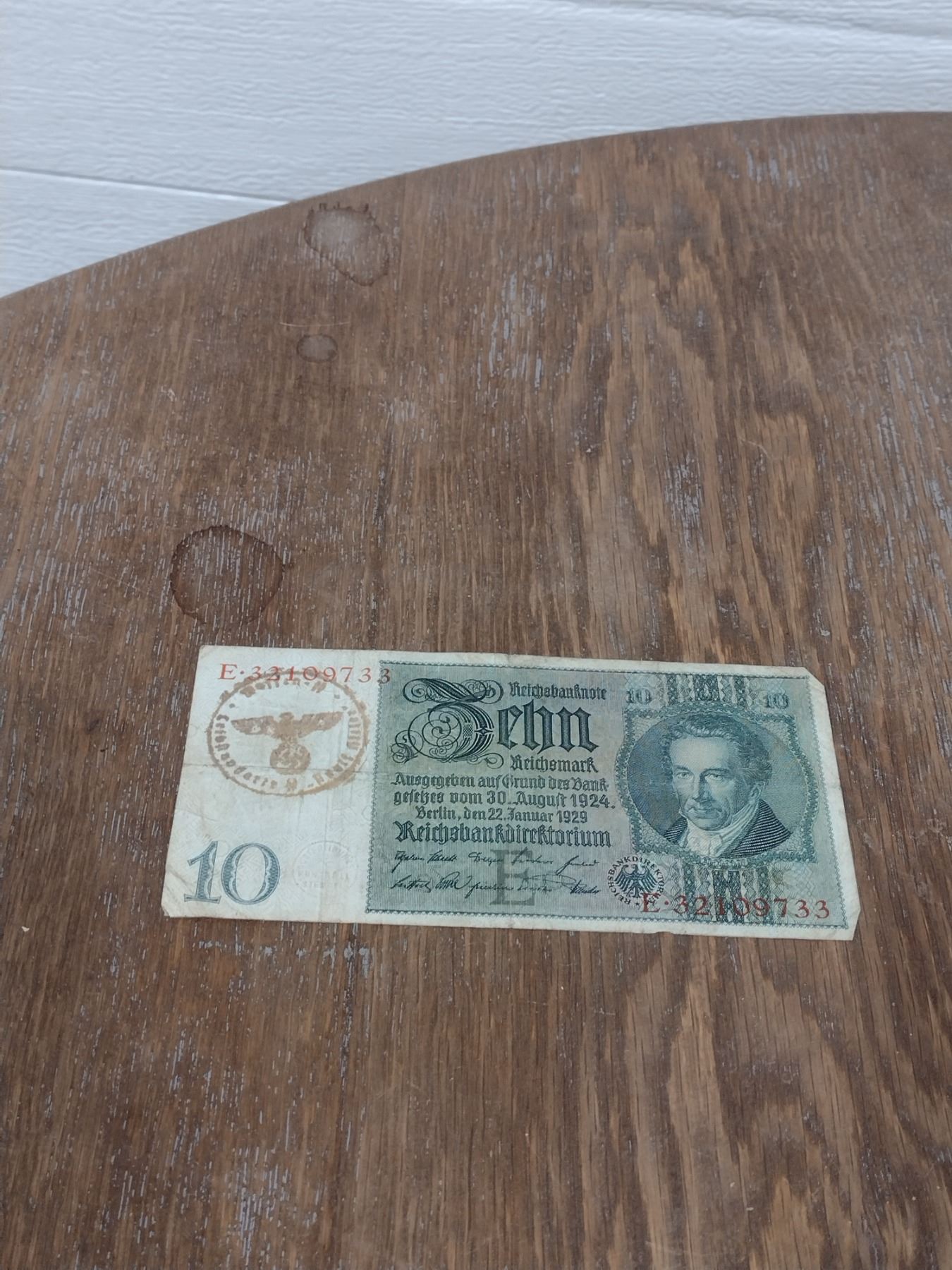 This is a 10 Reichsmark banknote issued by the Reichsbank in Germany. It is dated January 22, 1929