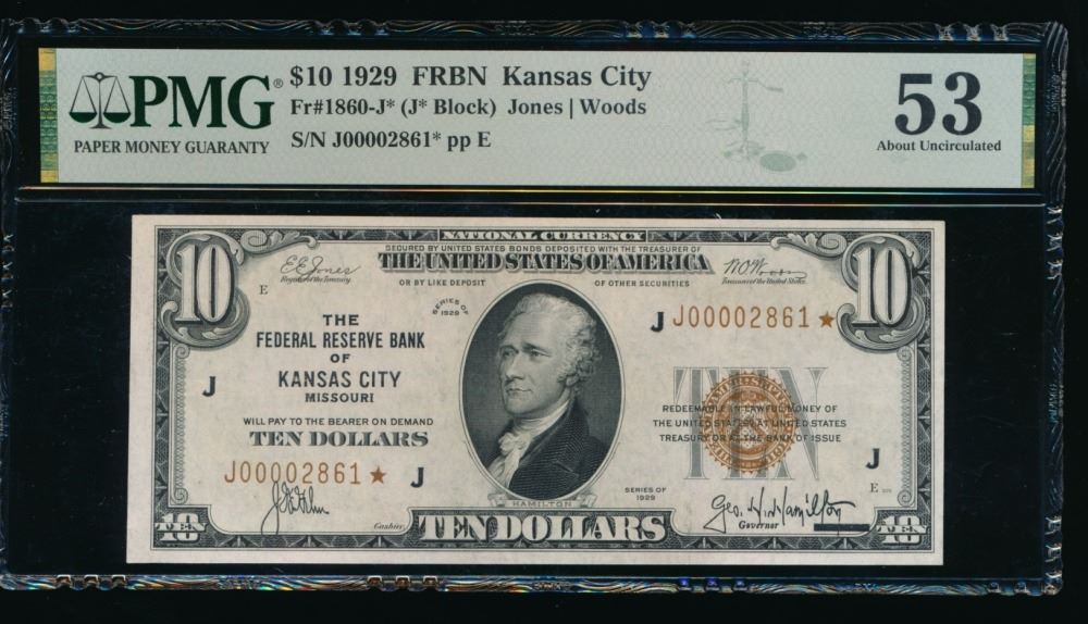One 1929 $10 STAR Kansas City FRBN PMG 53.