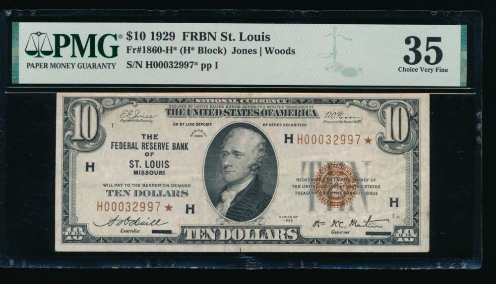 One 1929 $10 STAR ST Louis FRBN PMG 35.