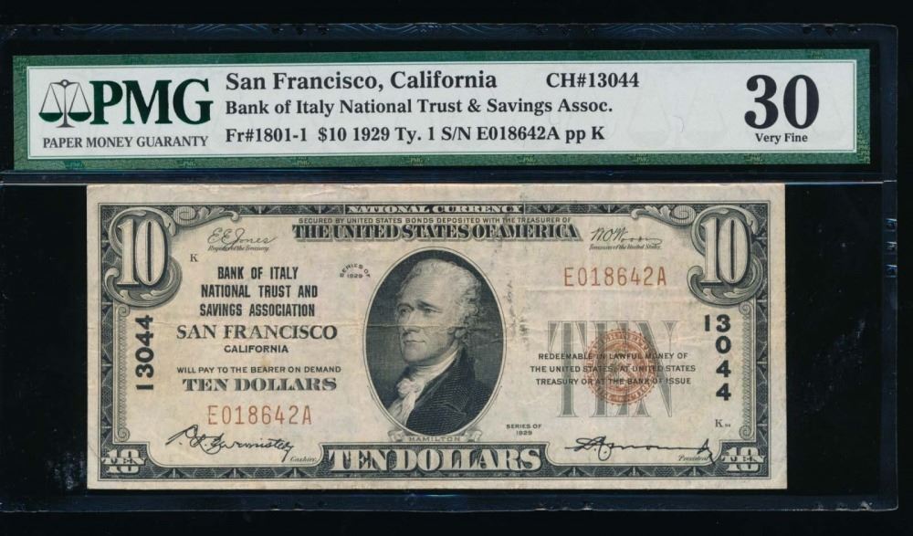 One 1929 $10 San Francisco National Bank Note PMG 30.