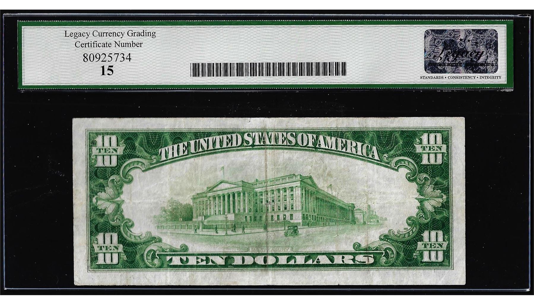 One 1929 $10 The Conestoga NB Lancaster, PA CH# 3987 National Currency Note Legacy Fine 15. Legacy Graded.