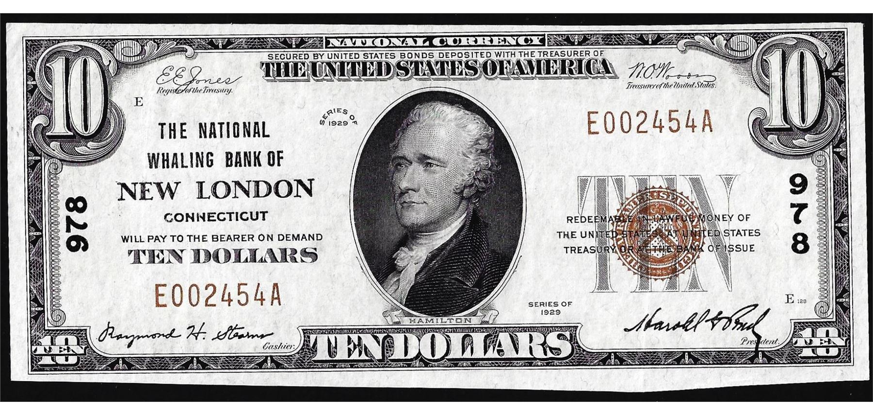 1929 $10 The National Whaling Bank of New London, CT CH# 978 National Currency Note