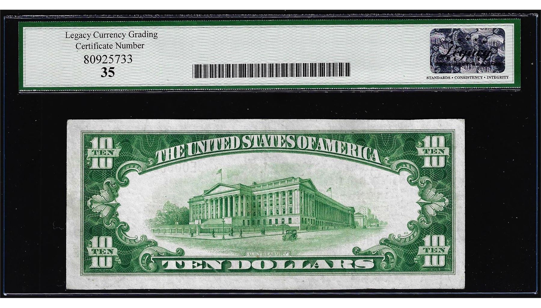 One 1929 $10 The Second NB Orange, NJ CH# 4724 National Currency Note Legacy Very Fine 35. Legacy Graded.