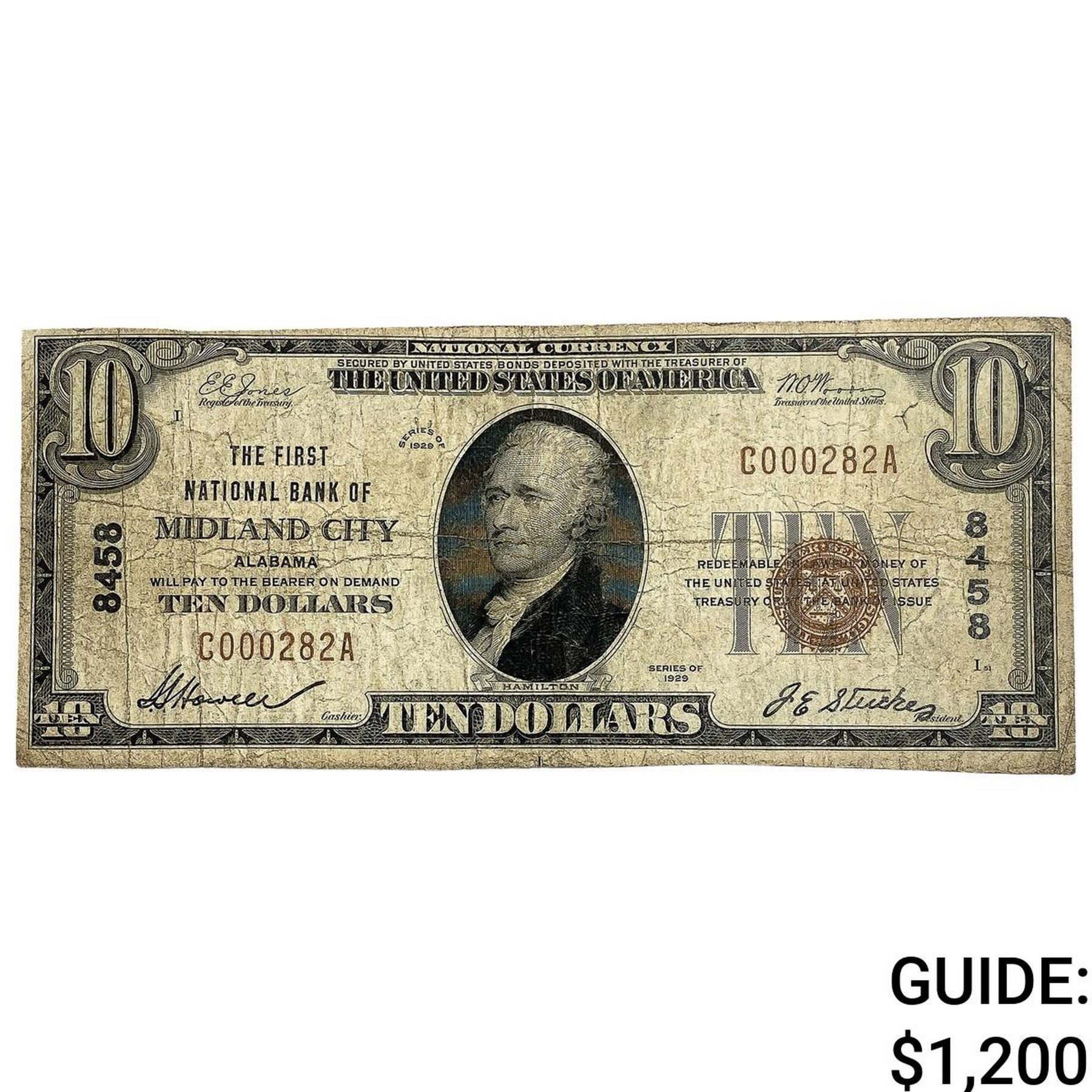 1929 $10 U.S Note-Nat. Bank of MIdland City, AL