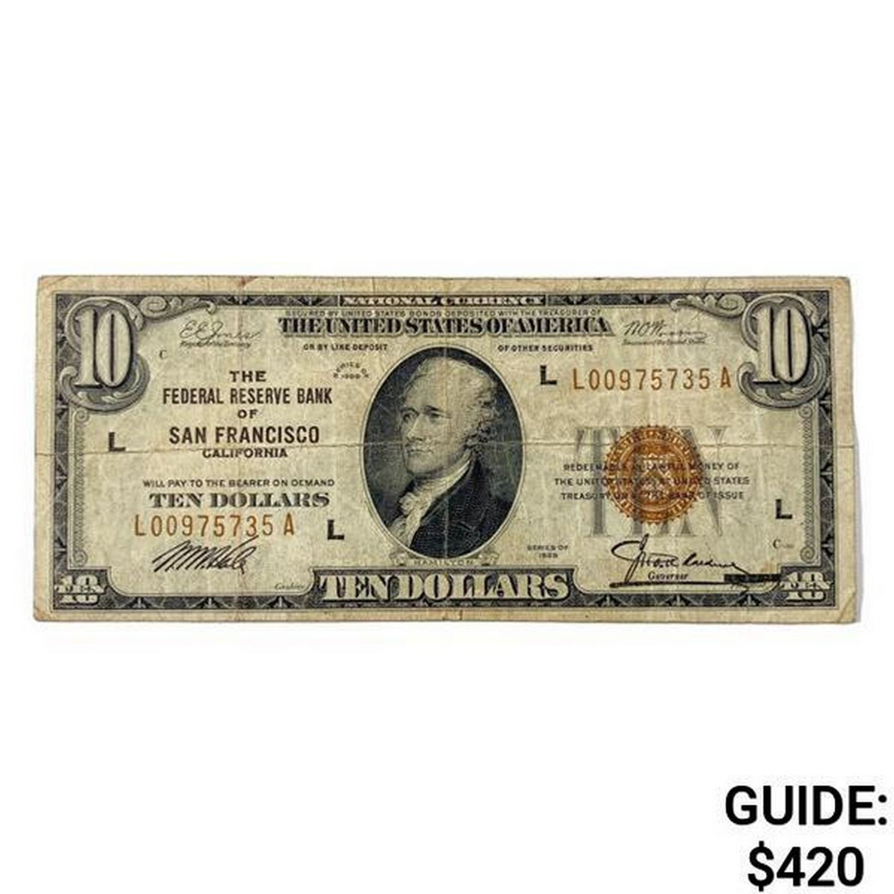 1929 $10 US Bank of San Francisco, CA Fed Res Note