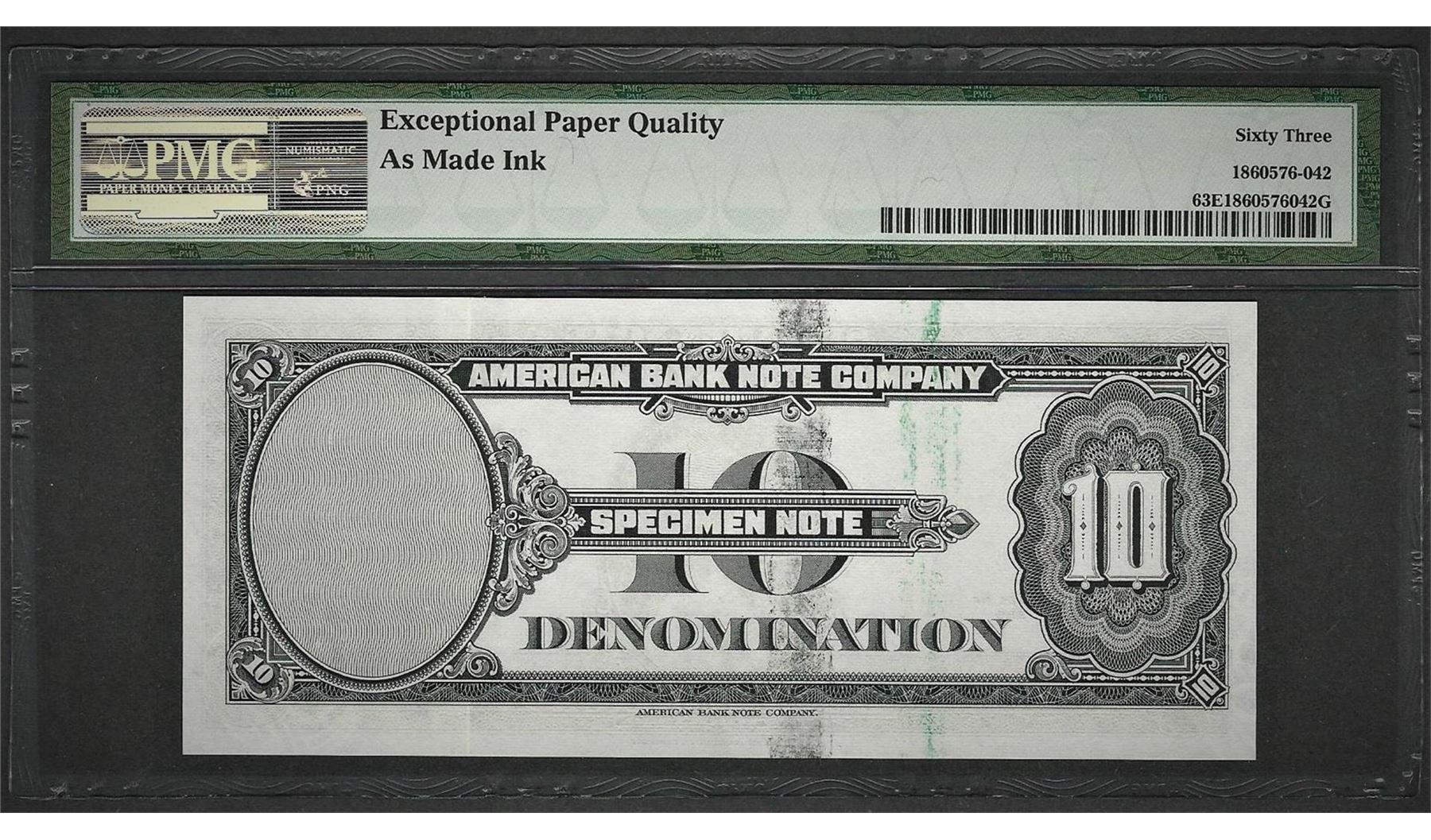1929 10 Unit American Bank Note Co. "Test Note" PMG Choice Uncirculated 63EPQ