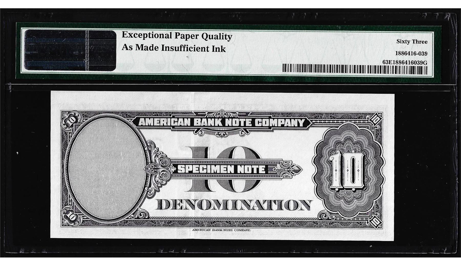 One 1929 10 Unit American Bank Note Co. "Test Note" PMG Choice Uncirculated 63EPQ. PMG Certified.