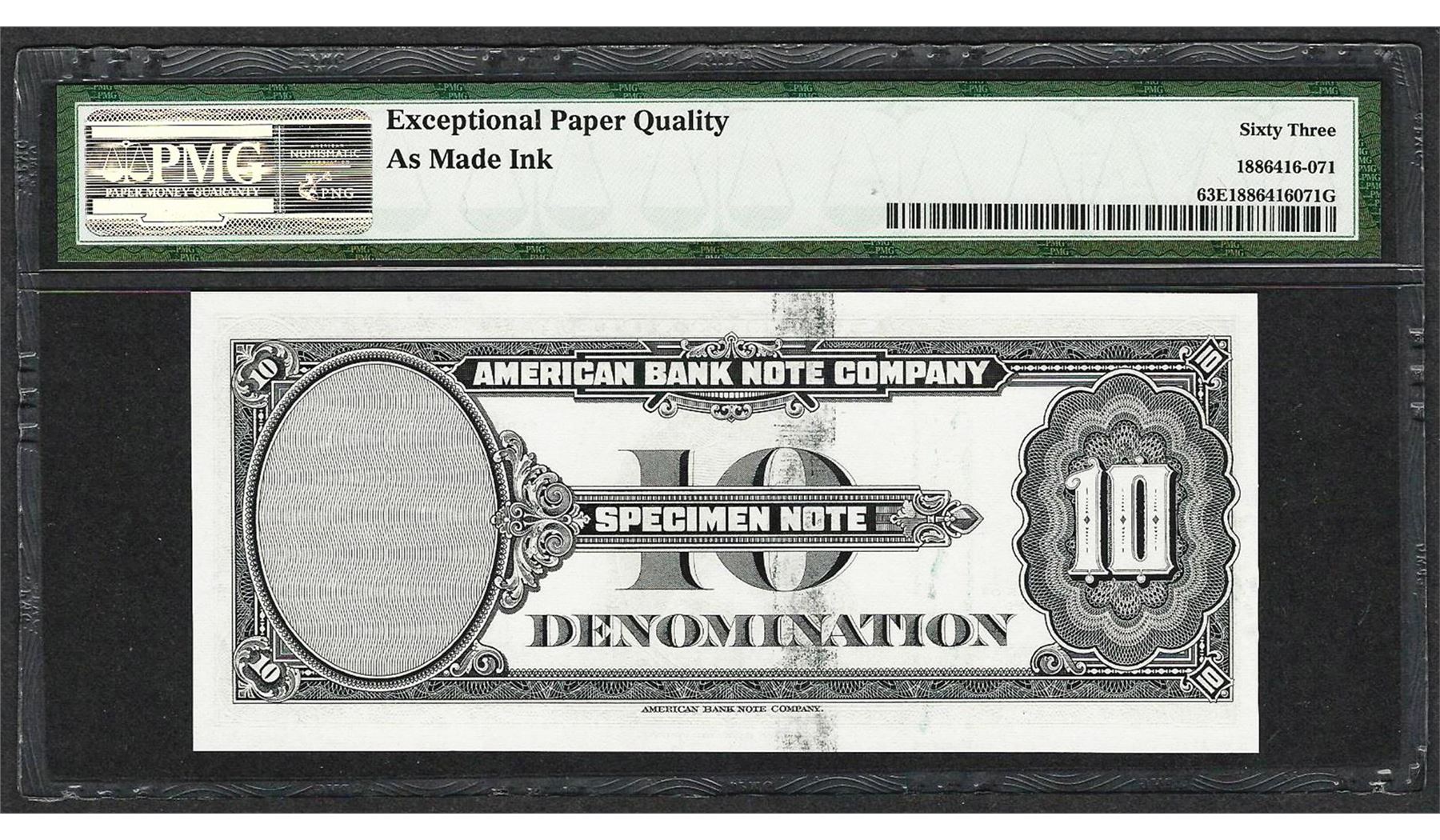1929 10 Unit American Bank Note Co. "Test Note" PMG Choice Uncirculated 63EPQ