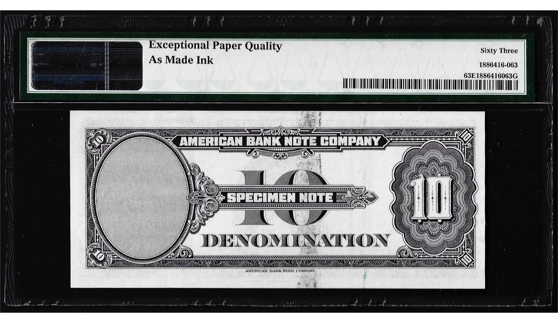 1929 10 Unit American Bank Note Co. "Test Note" PMG Choice Uncirculated 63EPQ