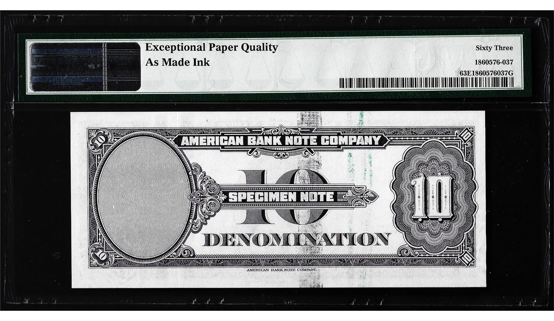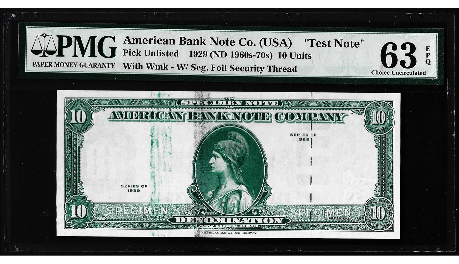 1929 10 Unit American Bank Note Co. "Test Note" PMG Choice Uncirculated 63EPQ