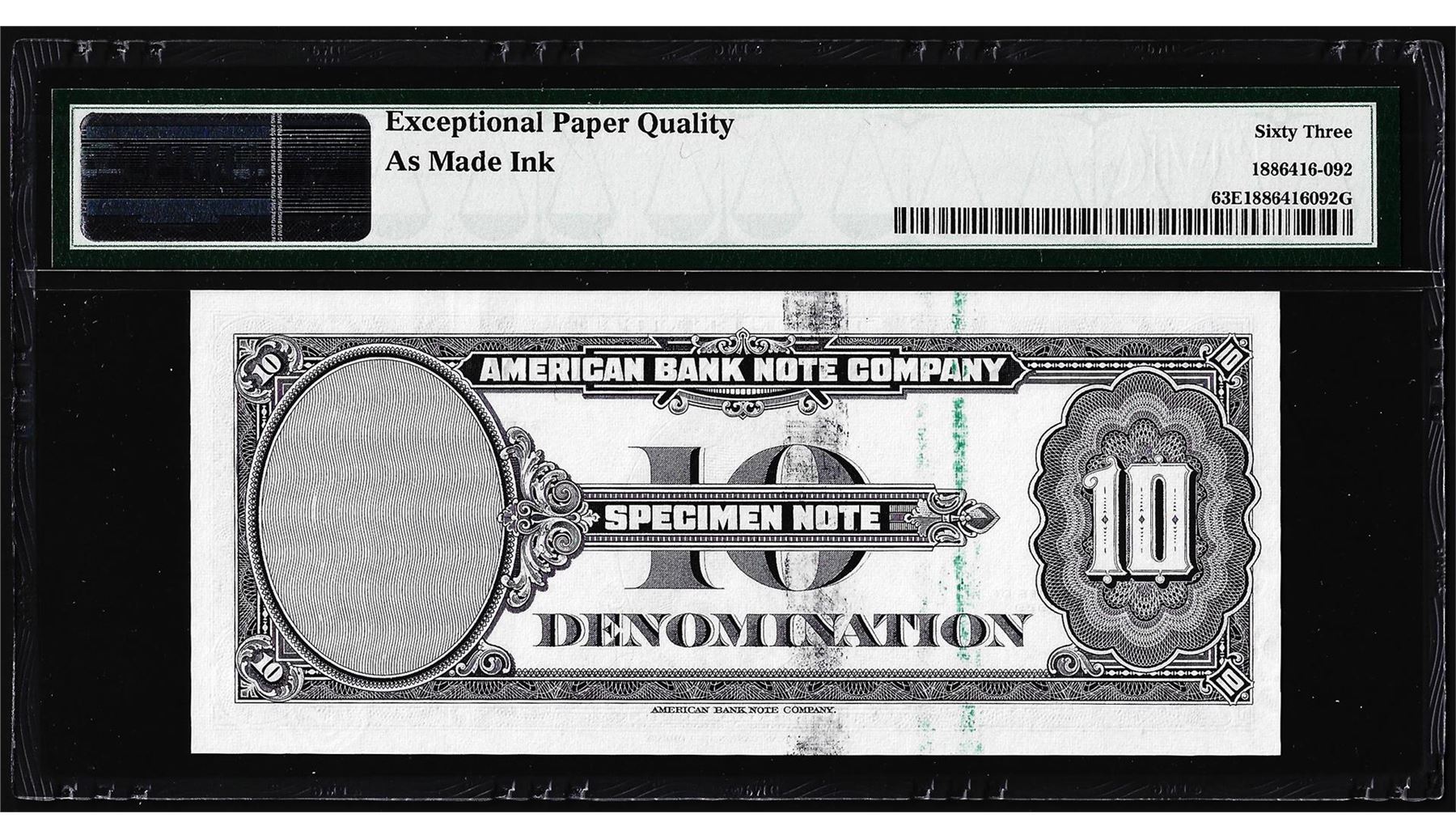 1929 10 Unit American Bank Note Co. "Test Note" PMG Choice Uncirculated 63EPQ
