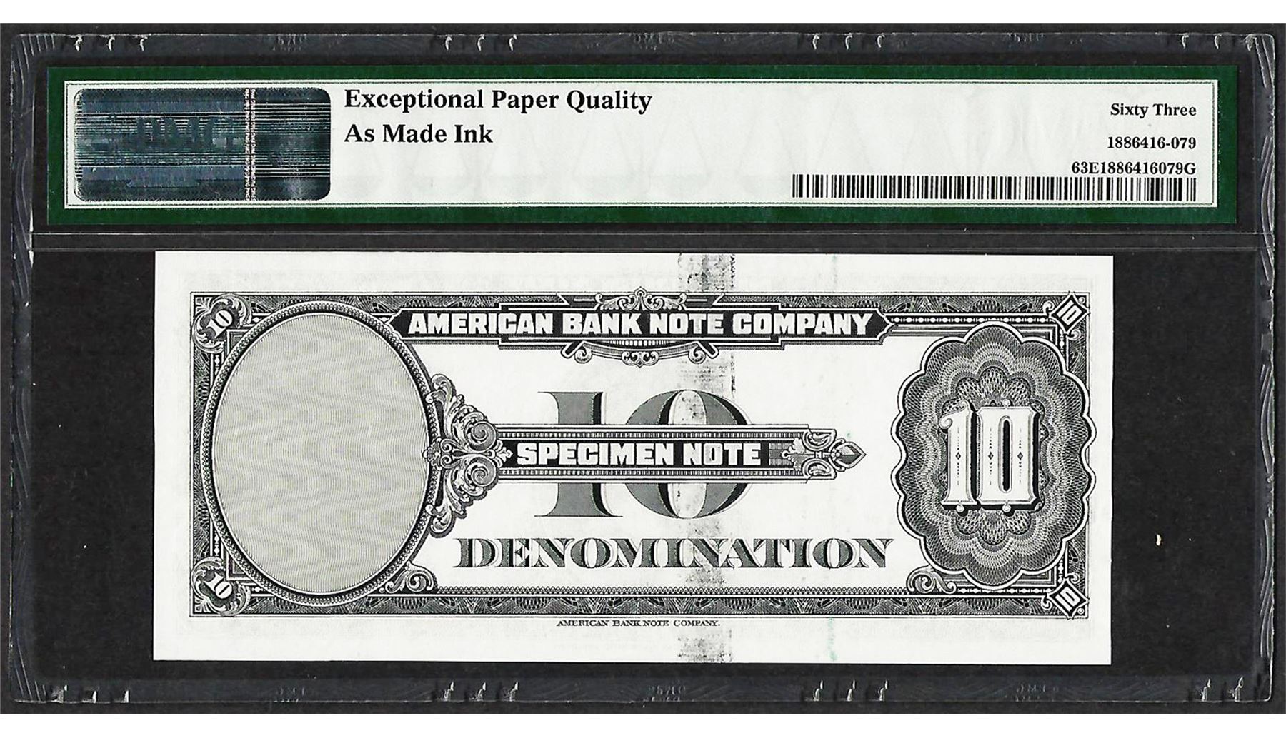 1929 10 Unit American Bank Note Co. "Test Note" PMG Choice Uncirculated 63EPQ