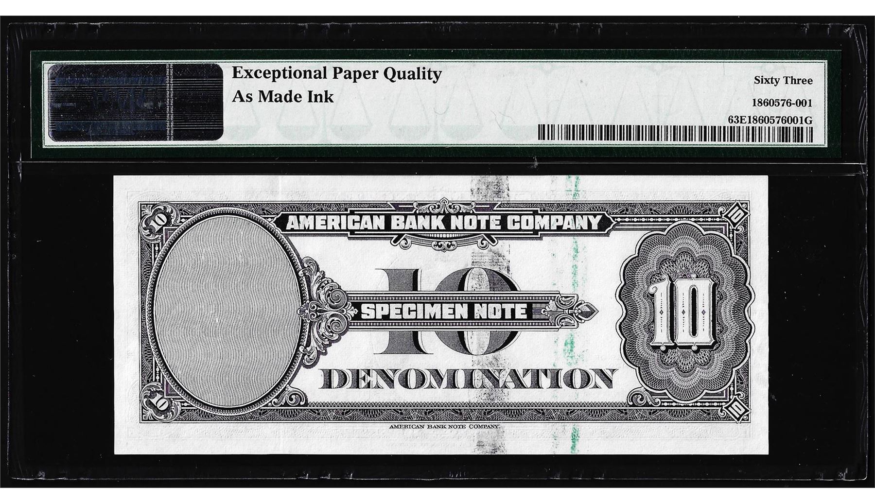 1929 10 Unit American Bank Note Co. "Test Note" PMG Choice Uncirculated 63EPQ