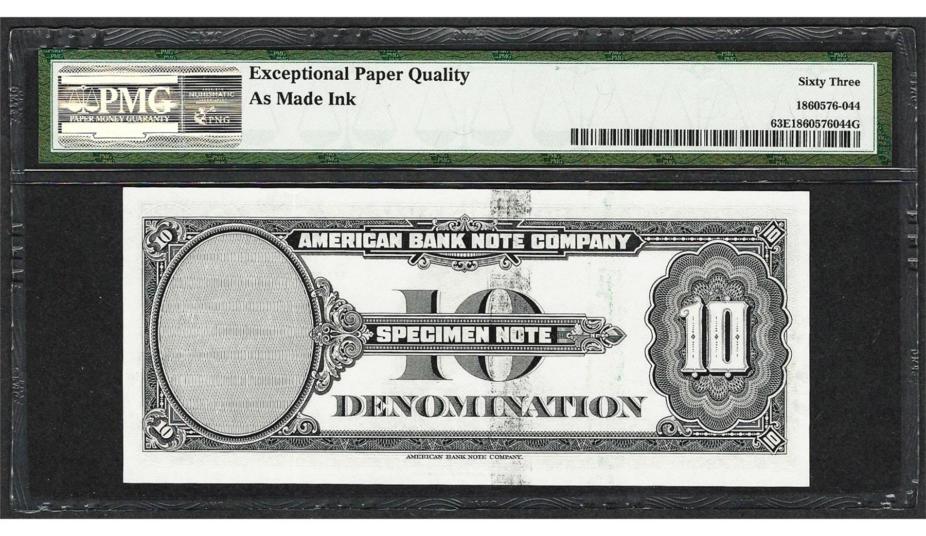 One 1929 10 Unit American Bank Note Co. "Test Note" PMG Choice Uncirculated 63EPQ. PMG Certified.