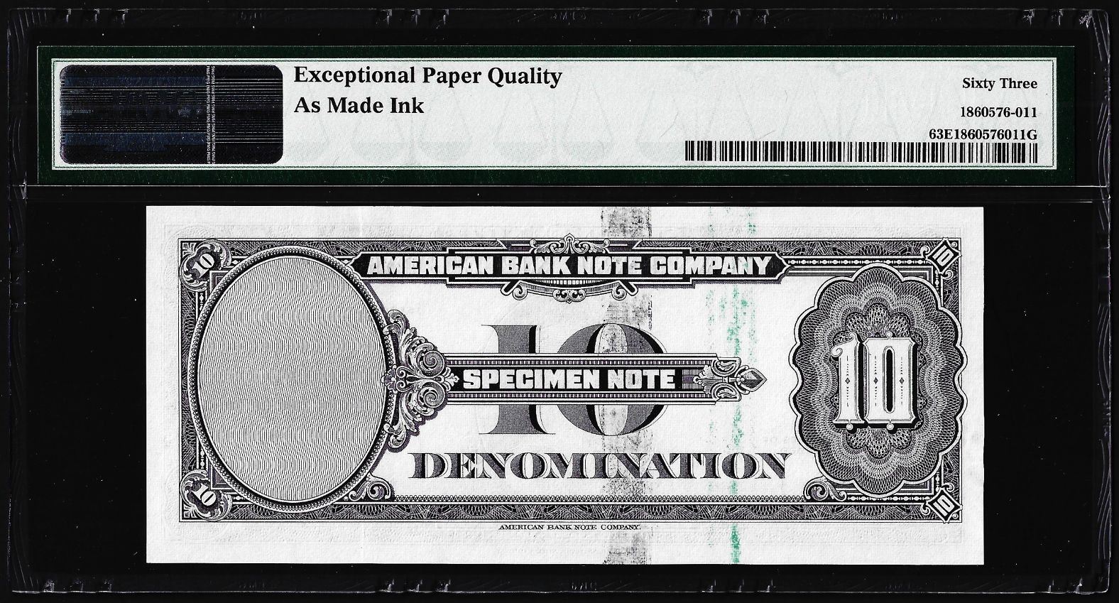 1929 10 Unit American Bank Note Co. "Test Note" PMG Choice Uncirculated 63EPQ