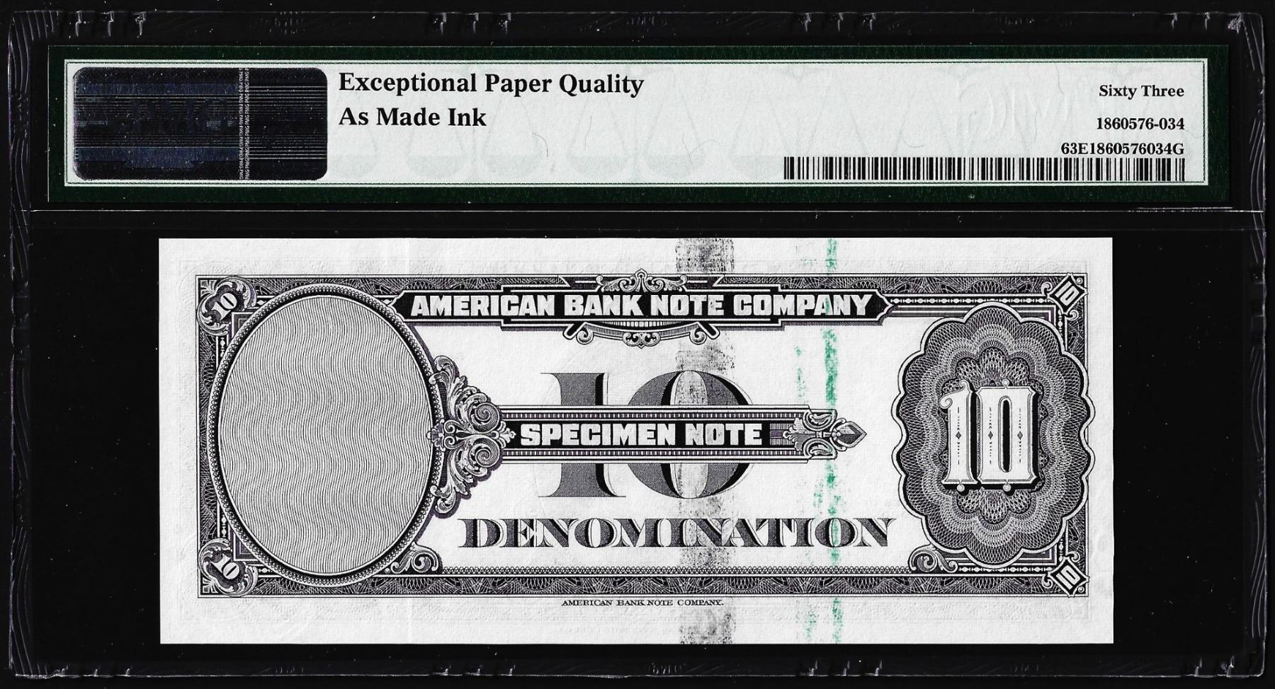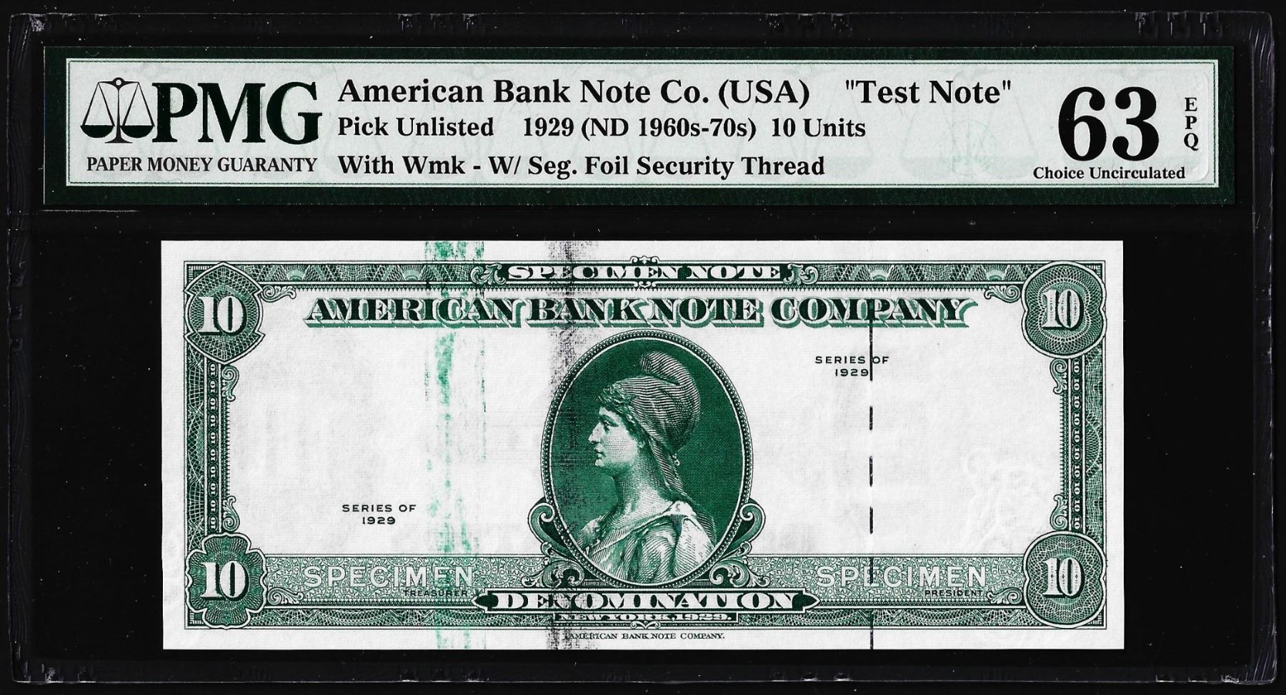 1929 10 Unit American Bank Note Co. "Test Note" PMG Choice Uncirculated 63EPQ