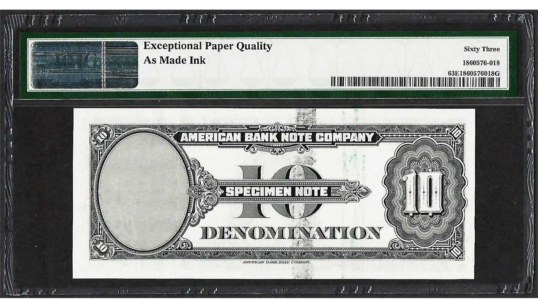 1929 10 Unit American Bank Note Co. "Test Note" PMG Choice Uncirculated 63EPQ