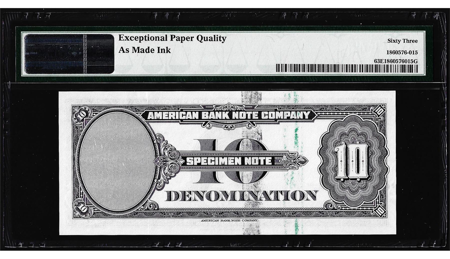 1929 10 Unit American Bank Note Co. "Test Note" PMG Choice Uncirculated 63EPQ