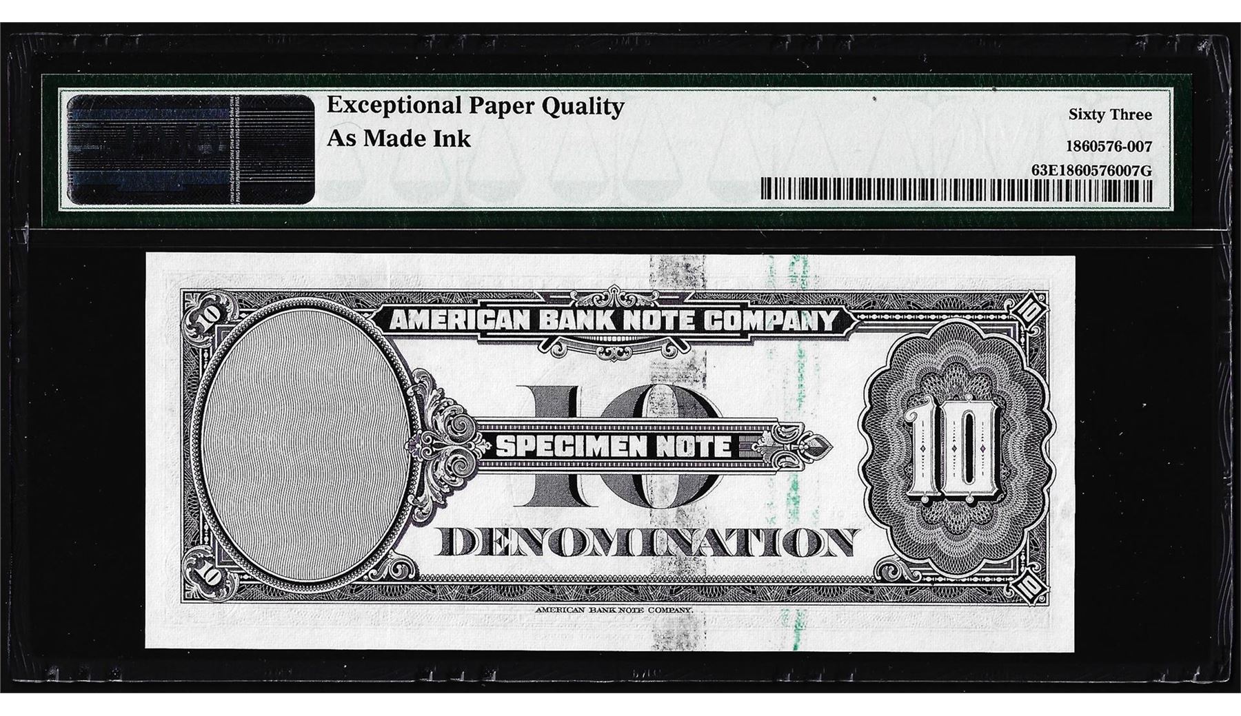 1929 10 Unit American Bank Note Co. "Test Note" PMG Choice Uncirculated 63EPQ