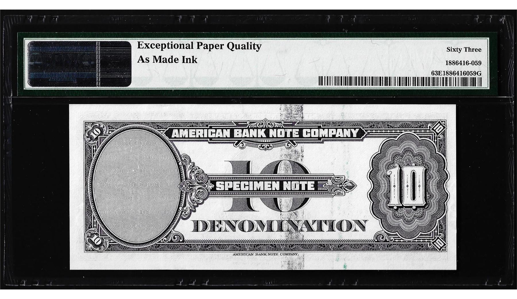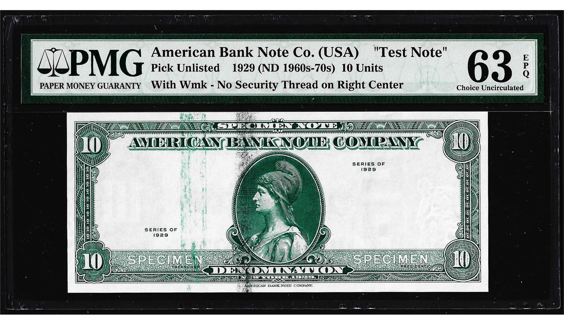 1929 10 Unit American Bank Note Co. "Test Note" PMG Choice Uncirculated 63EPQ