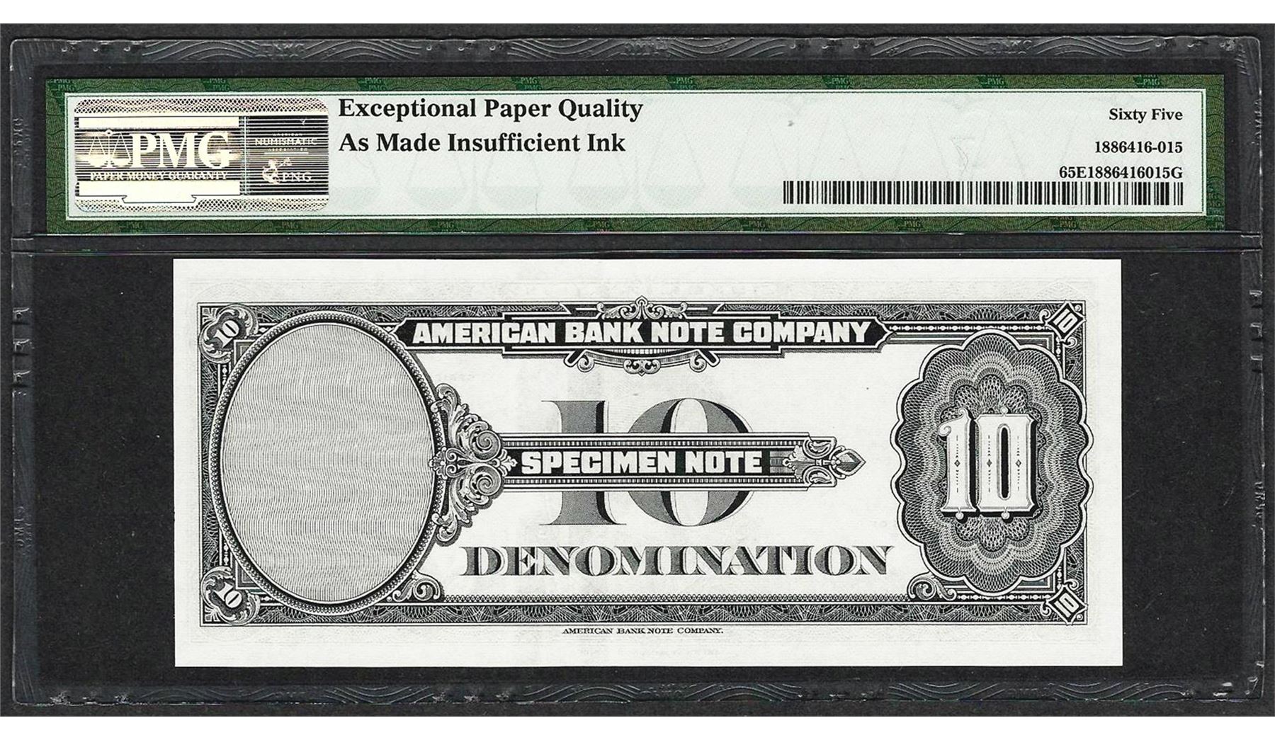 1929 10 Unit American Bank Note Co. "Test Note" PMG Gem Uncirculated 65EPQ