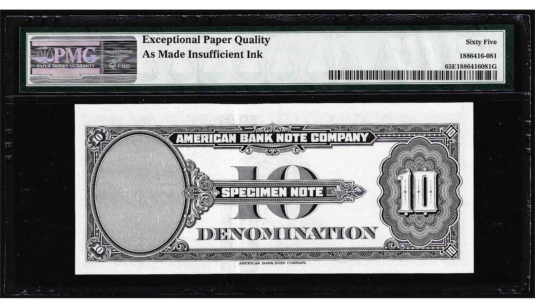 1929 10 Unit American Bank Note Co. "Test Note" PMG Gem Uncirculated 65EPQ