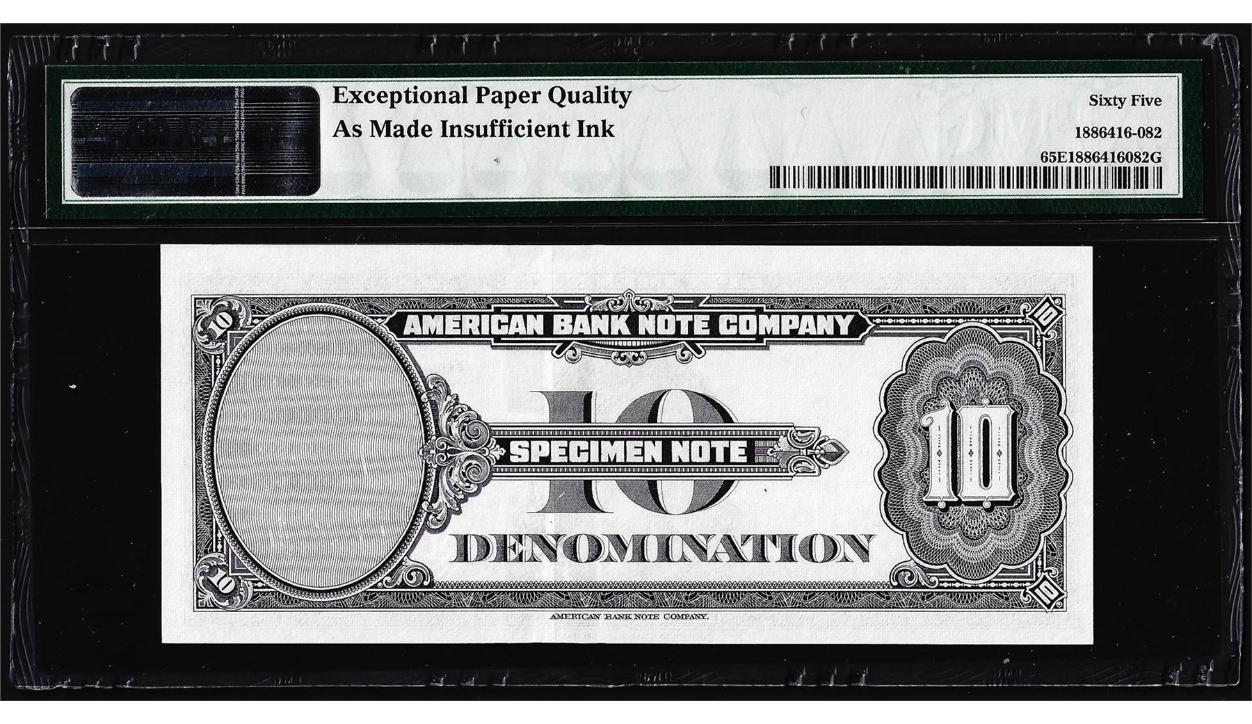 1929 10 Unit American Bank Note Co. "Test Note" PMG Gem Uncirculated 65EPQ