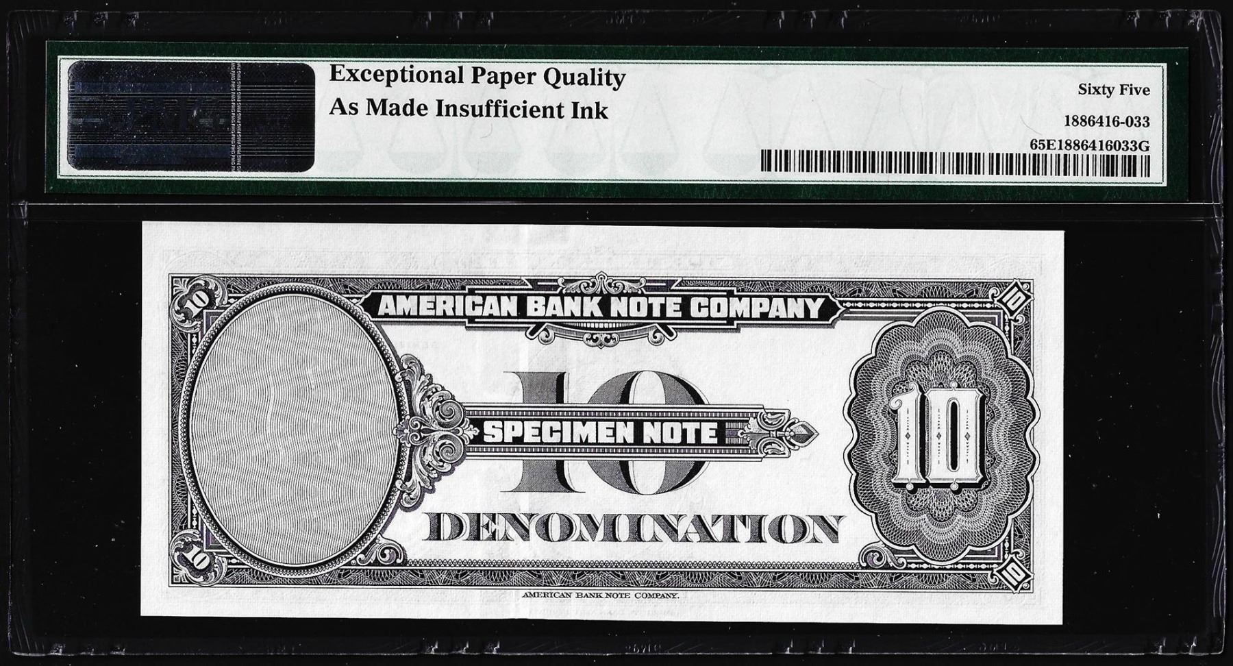 1929 10 Unit American Bank Note Co. "Test Note" PMG Gem Uncirculated 65EPQ