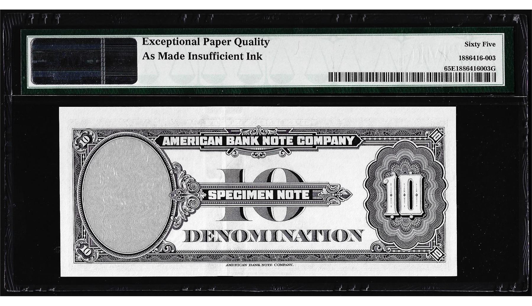 1929 10 Unit American Bank Note Co. "Test Note" PMG Gem Uncirculated 65EPQ