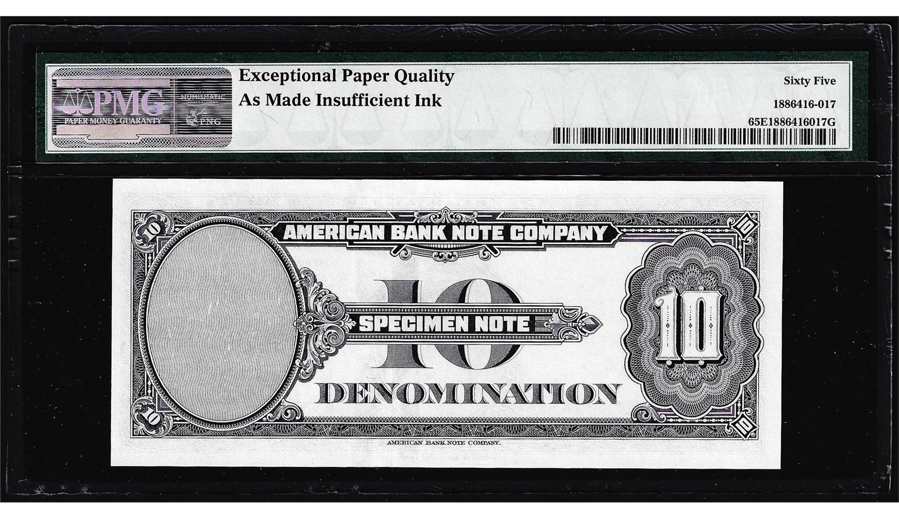 1929 10 Unit American Bank Note Co. "Test Note" PMG Gem Uncirculated 65EPQ
