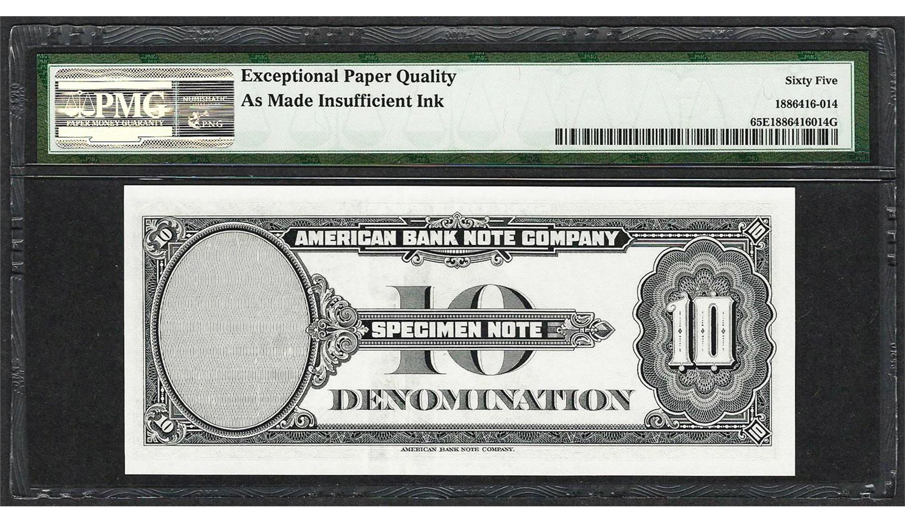 1929 10 Unit American Bank Note Co. "Test Note" PMG Gem Uncirculated 65EPQ
