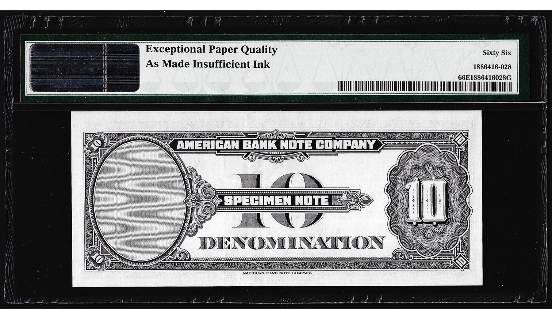 1929 10 Unit American Bank Note Co. "Test Note" PMG Gem Uncirculated 66EPQ