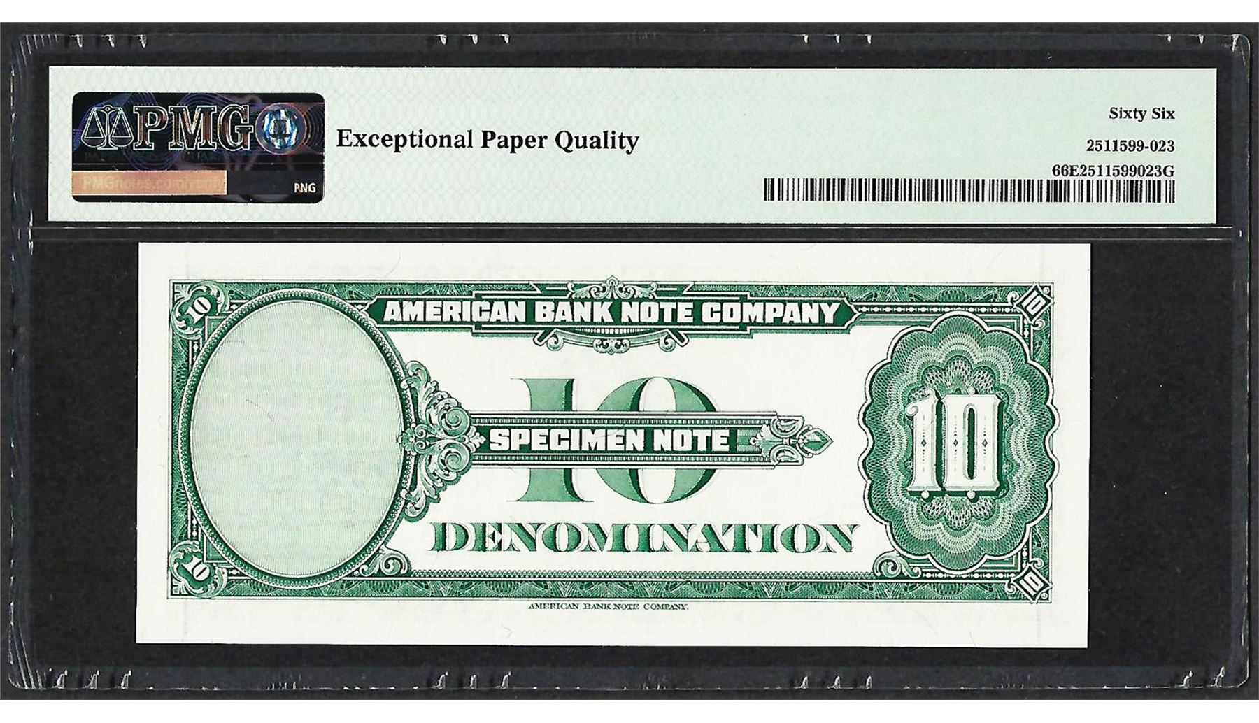 1929 10 Unit American Bank Note Co. "Test Note" PMG Gem Uncirculated 66EPQ