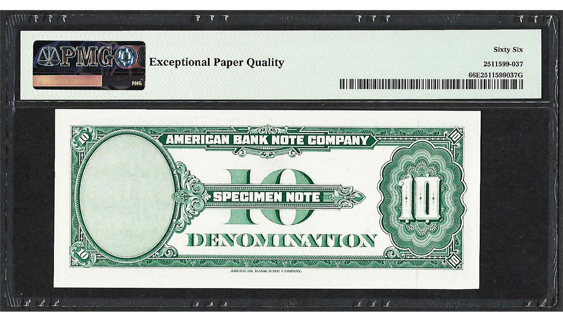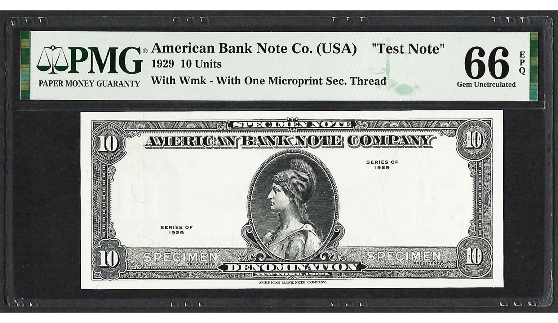 1929 10 Unit American Bank Note Co. "Test Note" PMG Gem Uncirculated 66EPQ