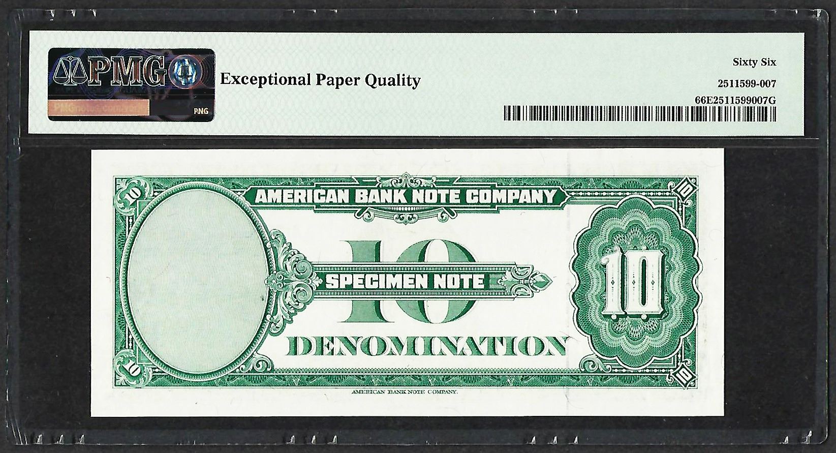 1929 10 Unit American Bank Note Co. "Test Note" PMG Gem Uncirculated 66EPQ