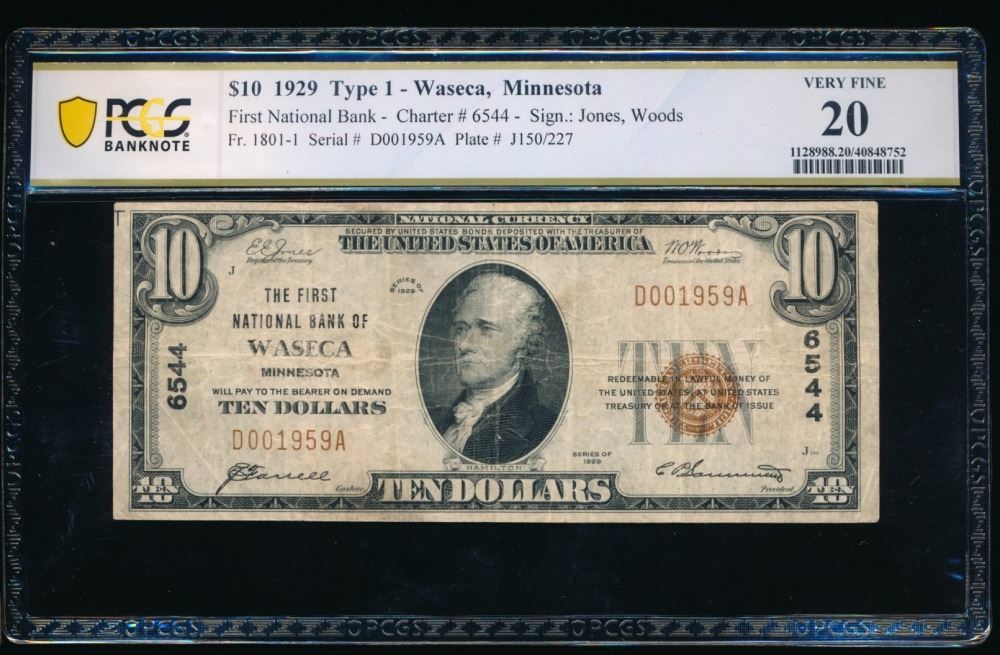 One 1929 $10 Waseca MN National Note PCGS 20.