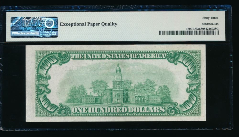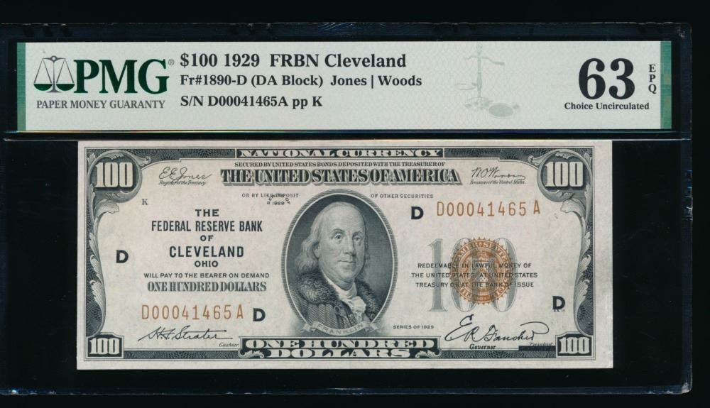 One 1929 $100 Cleveland FRBN PMG 63EPQ.
