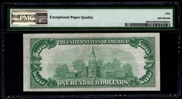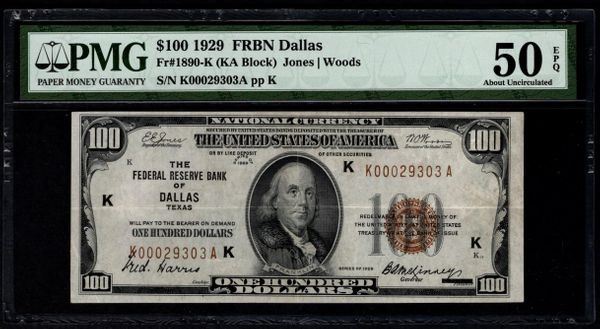 One 1929 $100 Dallas Federal Reserve Bank Note PMG 50EPQ.