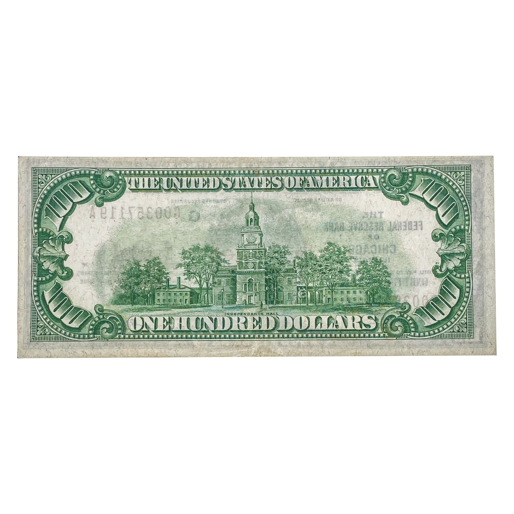 1929 $100 FRBN CHICAGO, IL ABOUT UNCIRCULATED