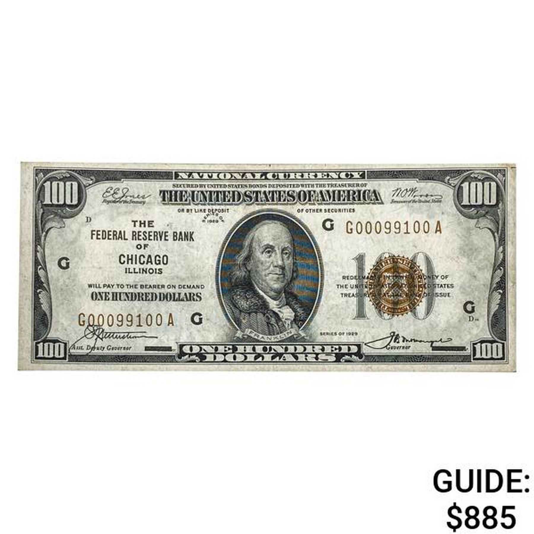 1929 $100 FRBN CHICAGO, IL EXTREMELY FINE